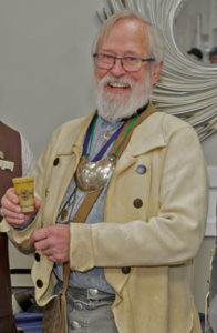 There was two major fundraising events over the weekend including a raffle for an exceptionally engraved horn cup made by Chris Helsel and engraved by Kathy England. The winning ticket was pulled at the end of the Fair on Saturday afternoon. Also, at the end of Saturday’s banquet, a special item was offered up for auction – The Journeymen III’s “collaborative” horn, which was started at this year’s Horn Fair, continued to be worked on at the Gunmakers Fair at Kempton and was completed during the upcoming 2024 Horn Fair.