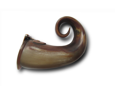 Clinton Byers of Lenior, NC: A unique, curled Scottish snuff mull made in an early 1780’s style from the tip of a Highland Cattle horn. This mull features a simple lid with a handmade copper “butterfly” type hinge. The creation of this particular mull was chronicled by Clint during his Masters presentation at the 2020 Annual Meeting and is featured in Part 3: Curling the Horn, of his article “The Scottish Pocket Mull: A study in its origins, evolution, and manufacture”, as published in the Horn Book.