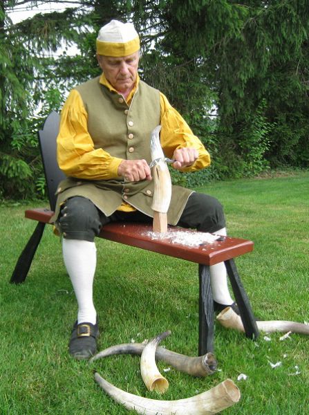 Ed Long, Guildmaster, shaves down a horn.